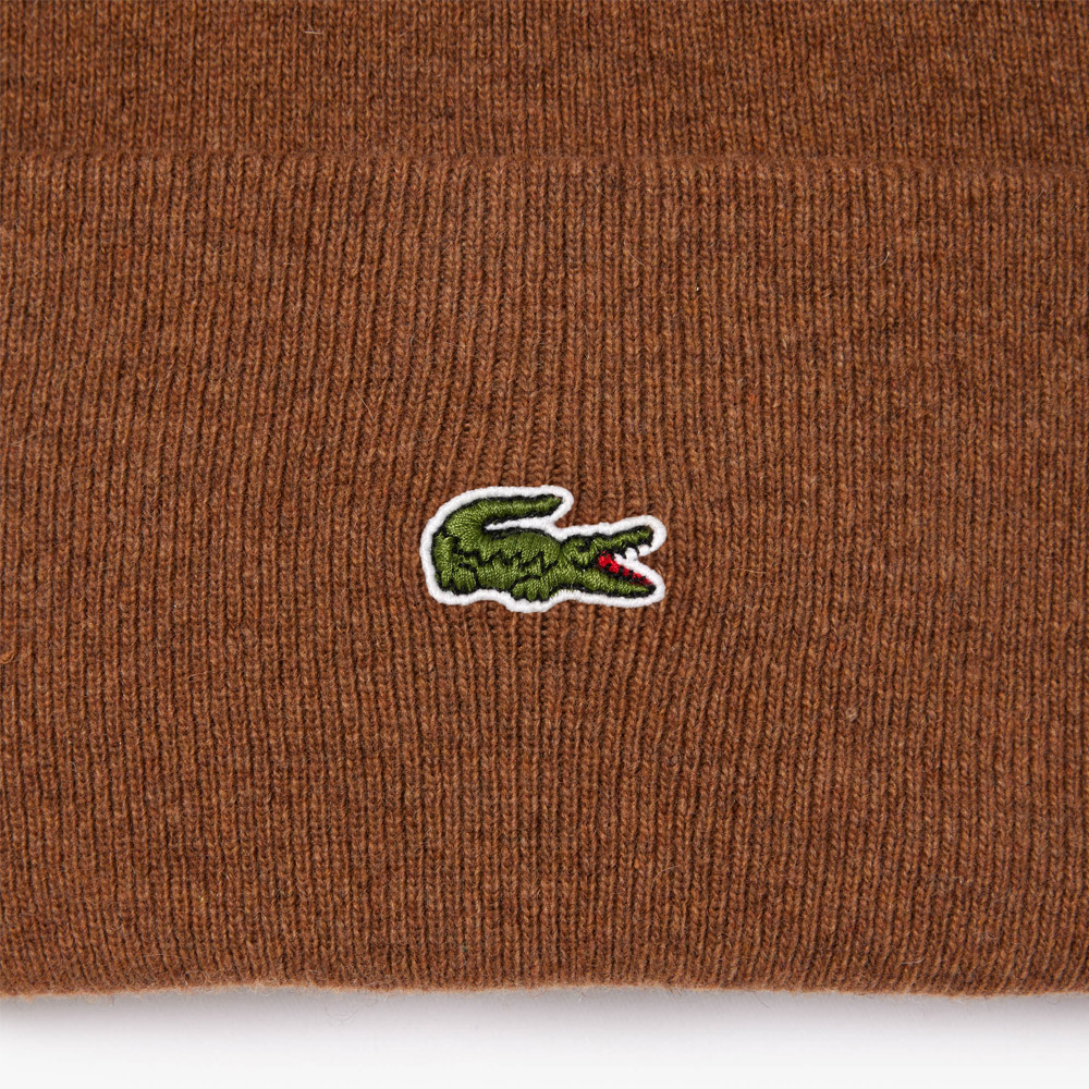BONNET EN LAINE A REVERS LACOSTE MARRON - RB9825 SIX - Unisexe