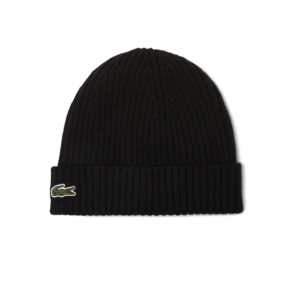 BONNET COTELÉ LACOSTE EN LAINE UNI NOIR