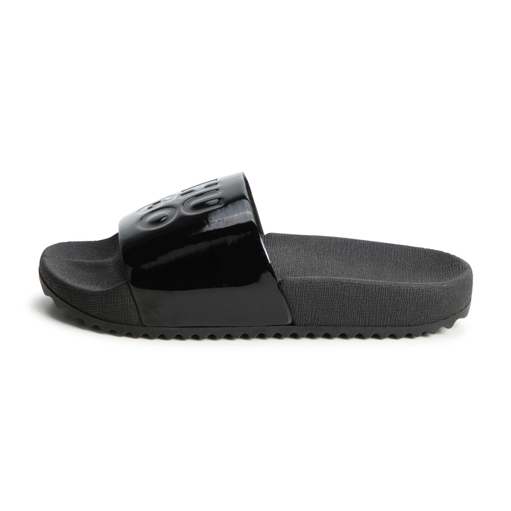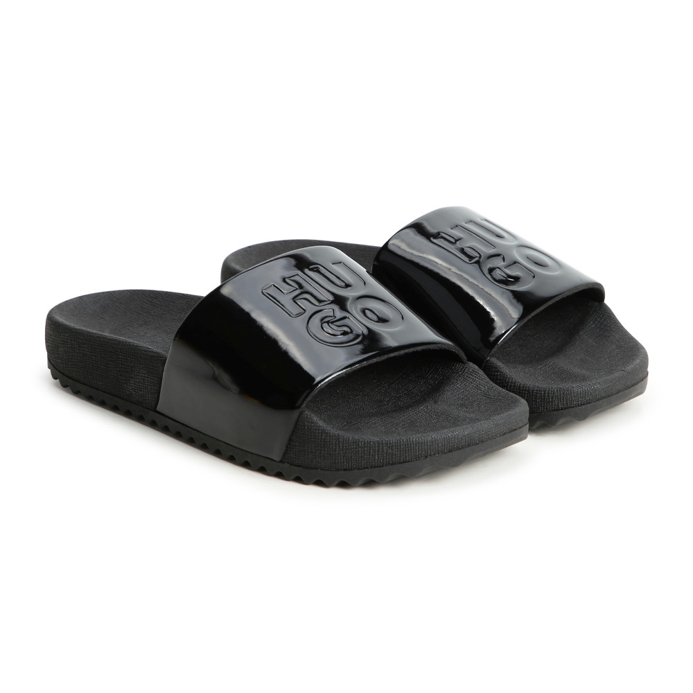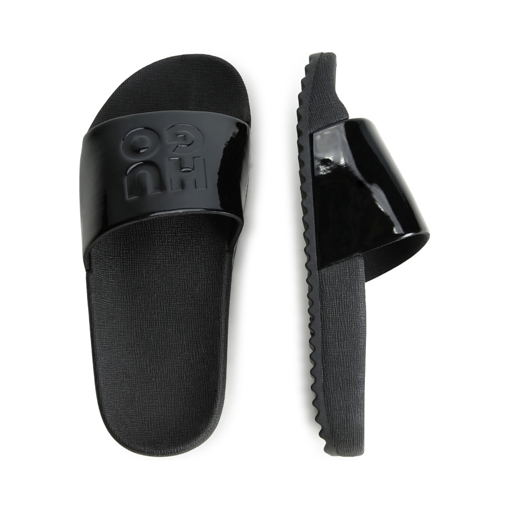 Ces claquettes HUGO se distinguent par leur aspect brillant. Un logo en relief figure sur le dessus de la bride. Ce modèle est réalisé dans des matières légères, pour un plus grand confort de marche. Il est vendu sur cintre.