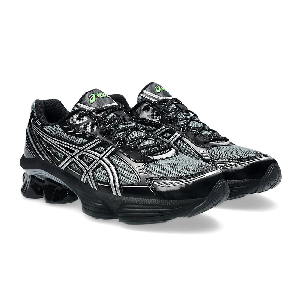 Les baskets ASICS GEL-KINETIC FLUENT en coloris Gris Piémont et Argent Pur s'inspirent des chaussures de course archivées, réinterprétant leur héritage avec des technologies modernes.