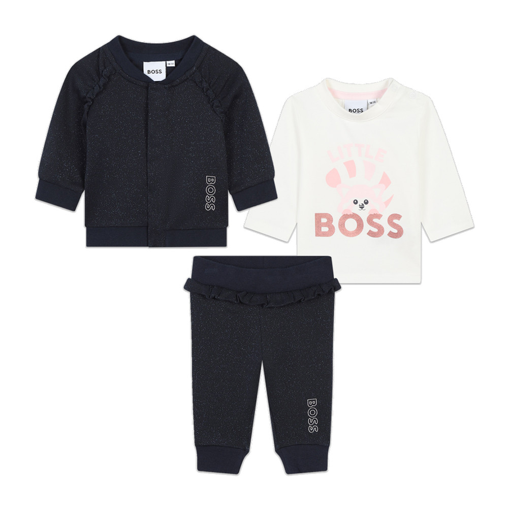 ENSEMBLE BLEU MARINE 3 PIÈCES CARDIGAN + T-SHIRT + PANTALON BOSS ENFANT - J51090 849 - Pour Bébé