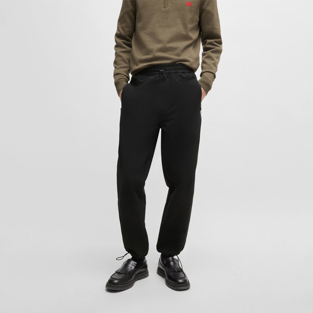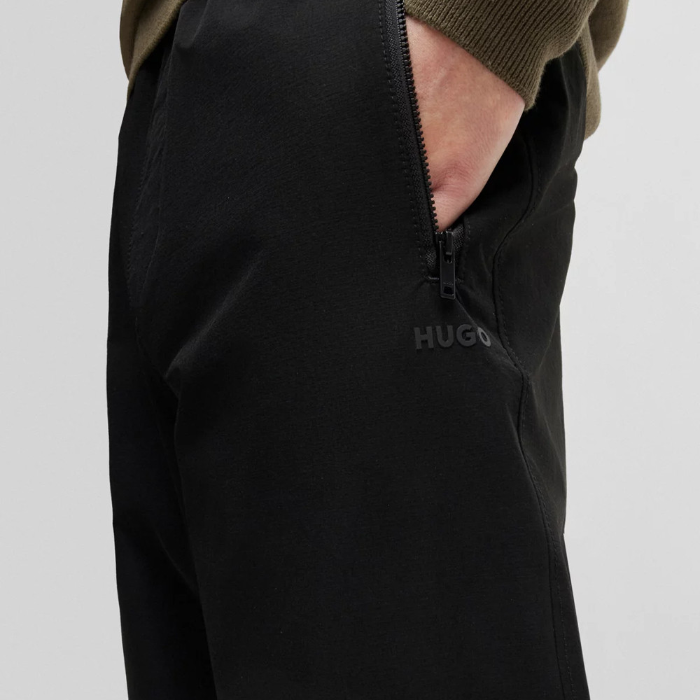Un pantalon déperlant HUGO Homme. Ce modèle fuselé Regular comporte des cordons ajustables au niveau des chevilles et de la taille.