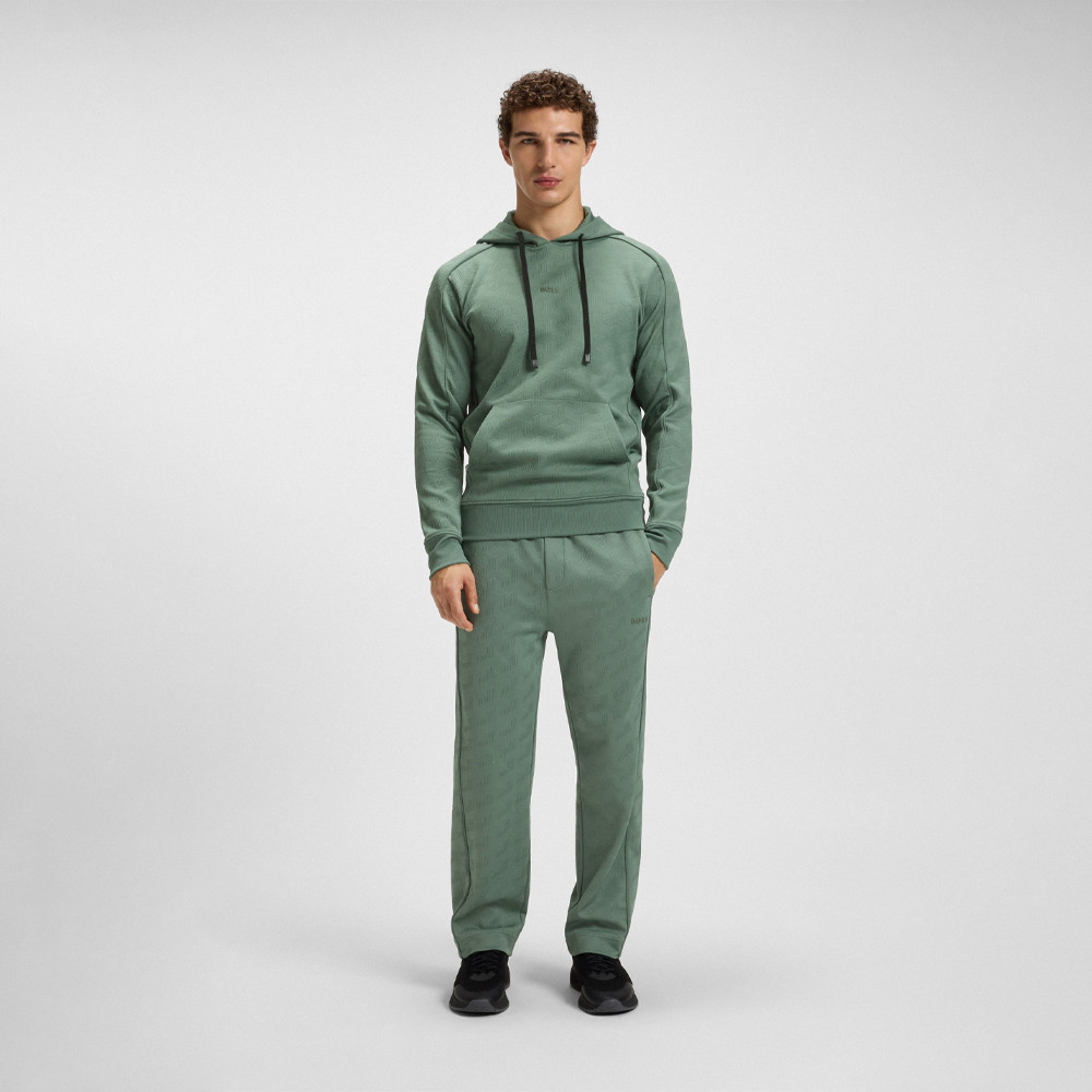 Affichez un look à la fois confortable et raffiné avec ce bas de survêtement BOSS Homme à la coupe droite Regular Fit. Conçu dans un jacquard matelassé moderne, il allie style urbain et finitions premium.