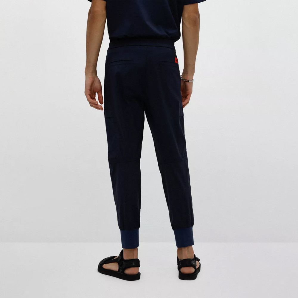 Un pantalon Slim Fit HUGO Homme pourvu de plis sur le devant et de poches zippées sur les jambes. Ce pantalon resserré au bas des jambes est orné d’une étiquette logo rouge emblématique. Il est confectionné en tissu léger à la finition déperlante. Complétez le look avec la veste assortie.