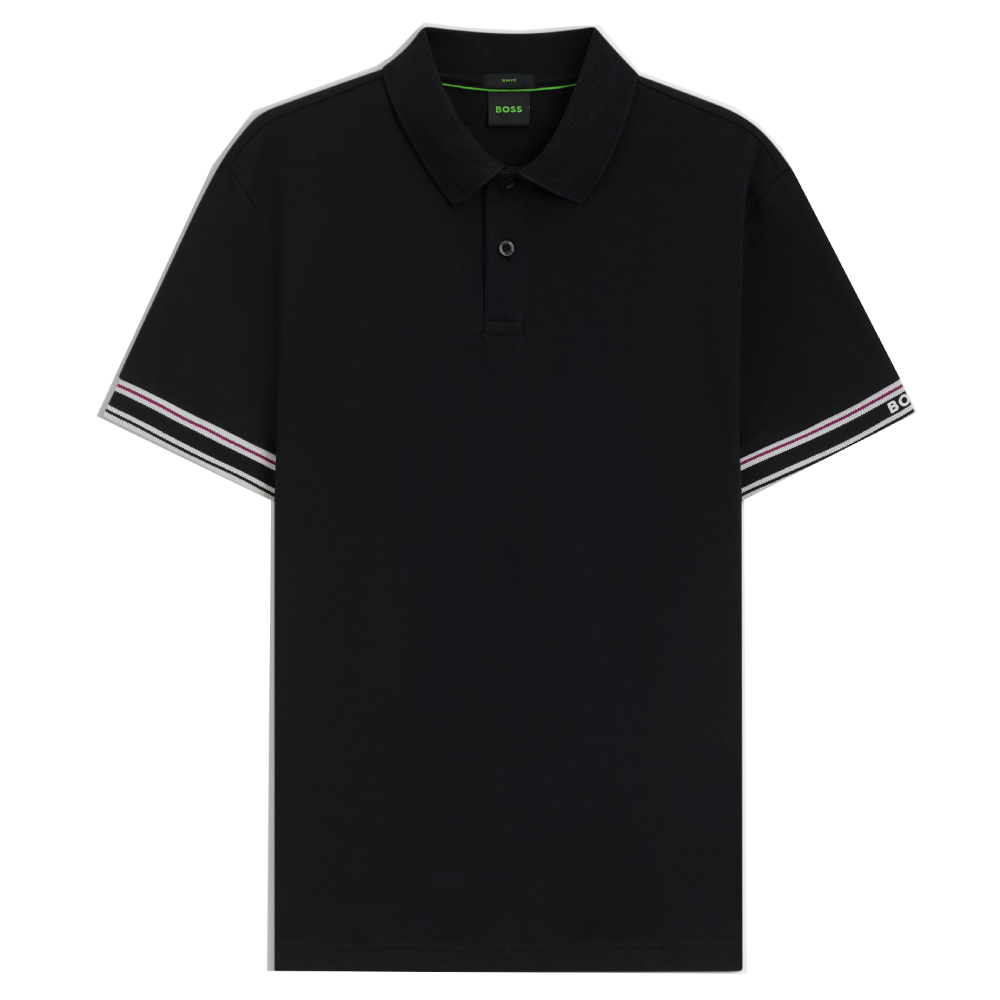 Polo Slim Boss POLO ZONE - Noir - en coton avec bas de manches à rayures - 50544448-001 - pour Homme