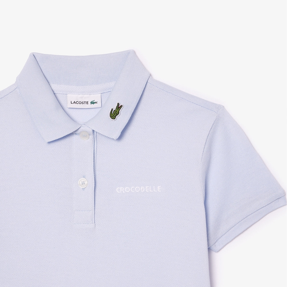 ROBE LACOSTE ENFANT EN PETIT PIQUÉ BLEU CLAIR AVEC LOGO CROCODELLE BRODÉ - EJ7979 J2G - Pour Enfant
