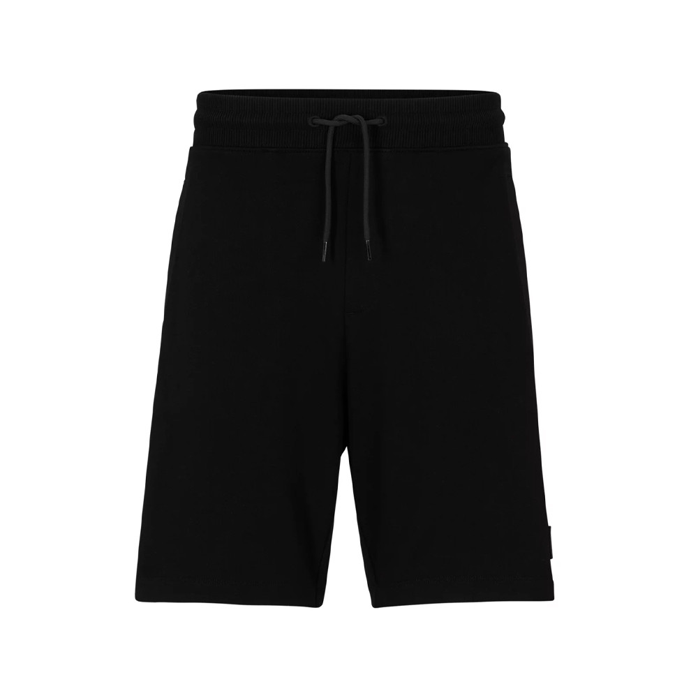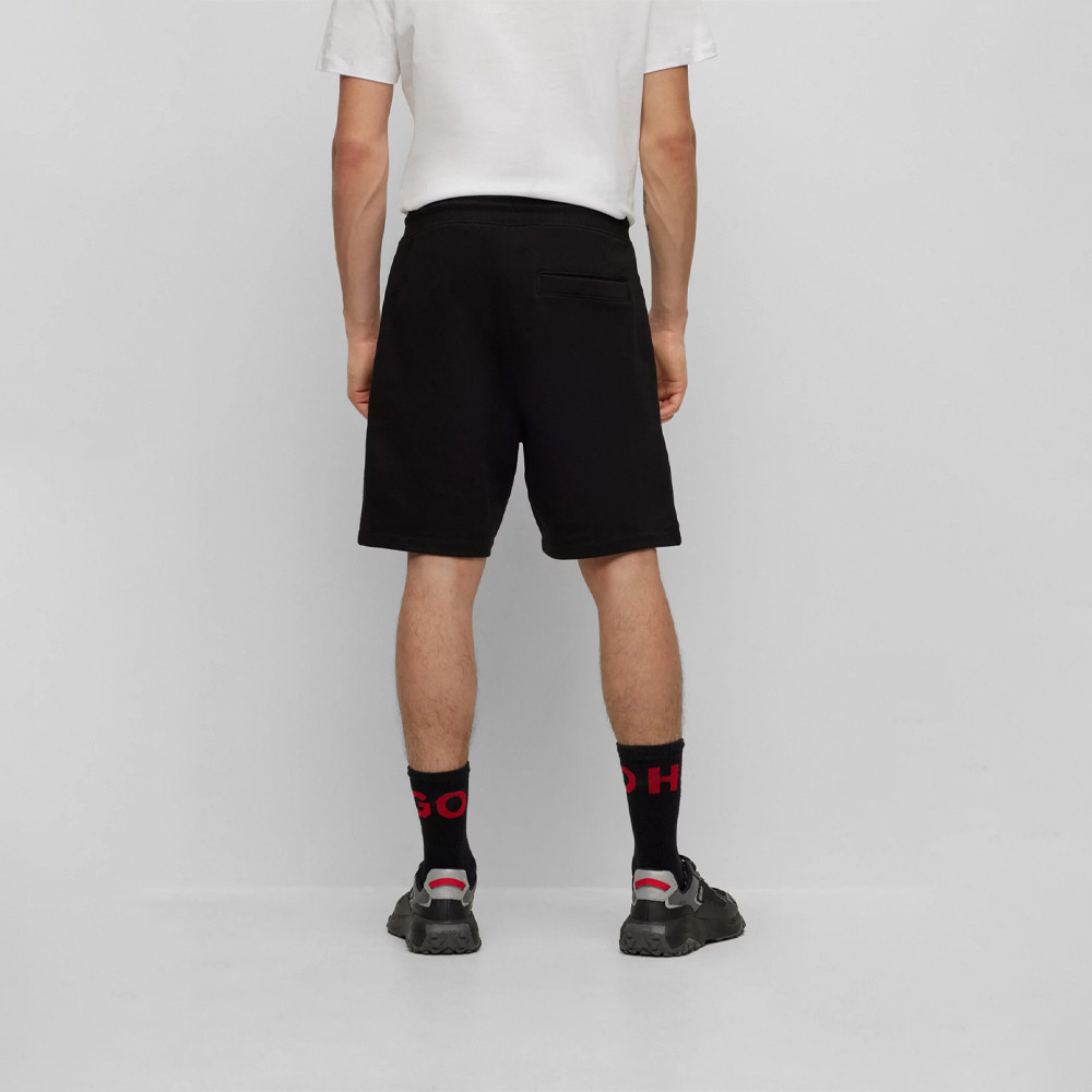 SHORT DIZ_C HUGO NOIR EN MOLLETON DE COTON AVEC BADGE LOGO TON SUR TON - 50495713 001 - Pour homme