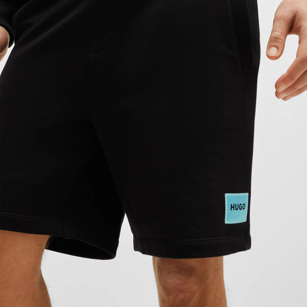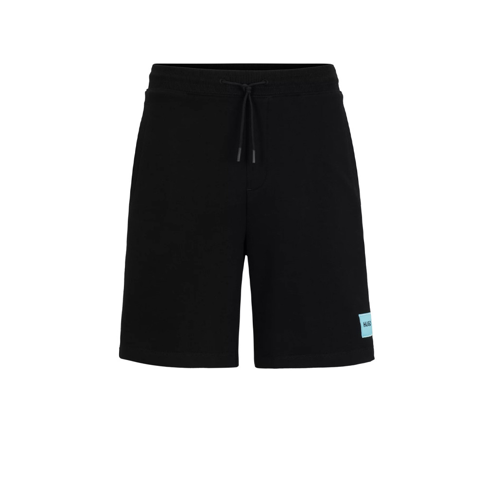 SHORT HUGO REGULAR FIT EN MOLLETON DE COTON NOIR AVEC ÉTIQUETTE LOGO DIZ222 - 50466196 009 - Pour Homme