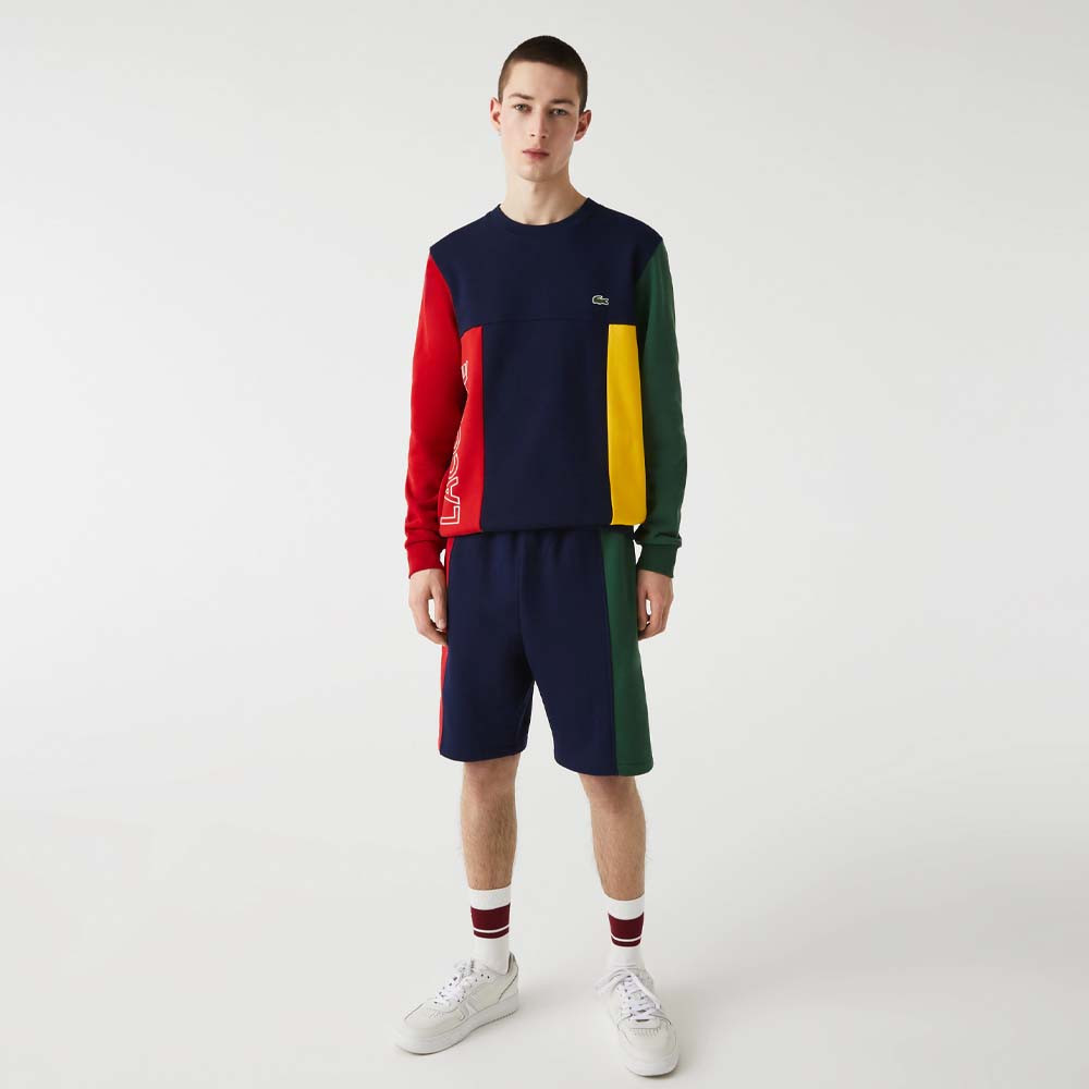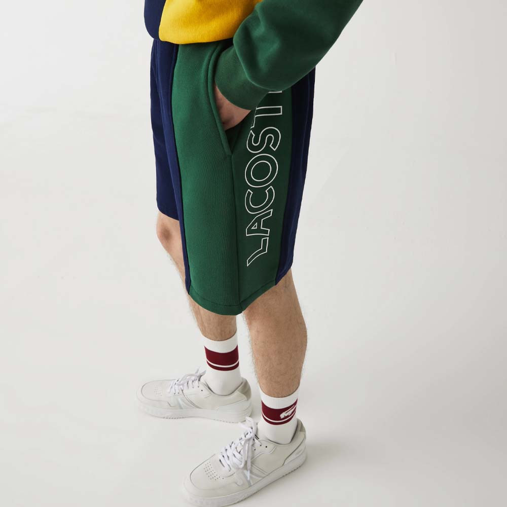 Short Lacoste en molleton de coton mélangé tricolore avec marquage
