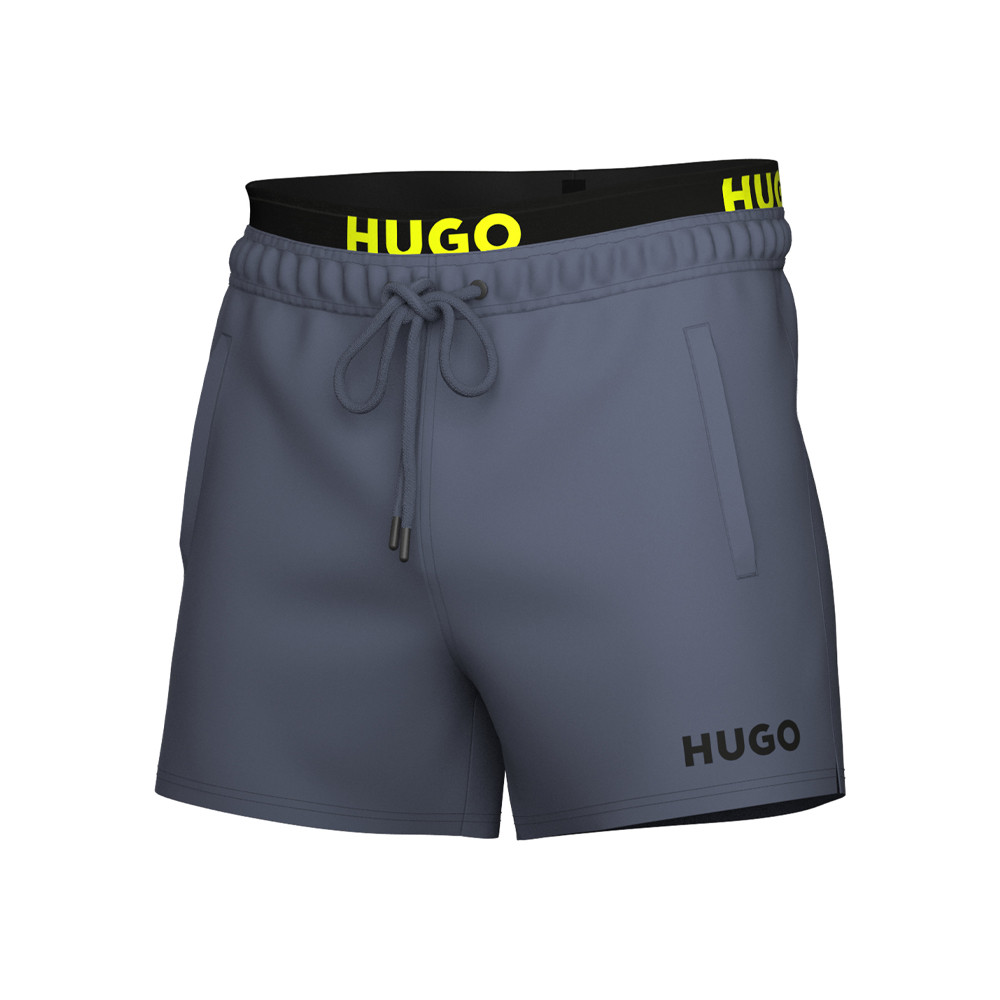 SHORT DE BAIN BLEU CLAIR HUGO À LOGO IMPRIMÉ ET TAILLE DOUBLE FLEX - 50496287 423 - Pour Homme