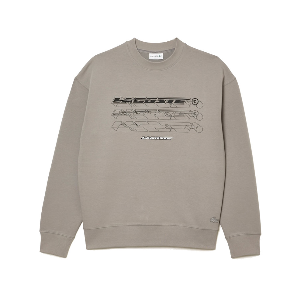 SWEATSHIRT LACOSTE LOOSE FIT GRIS AVEC MARQUAGES SUR LE DEVANT