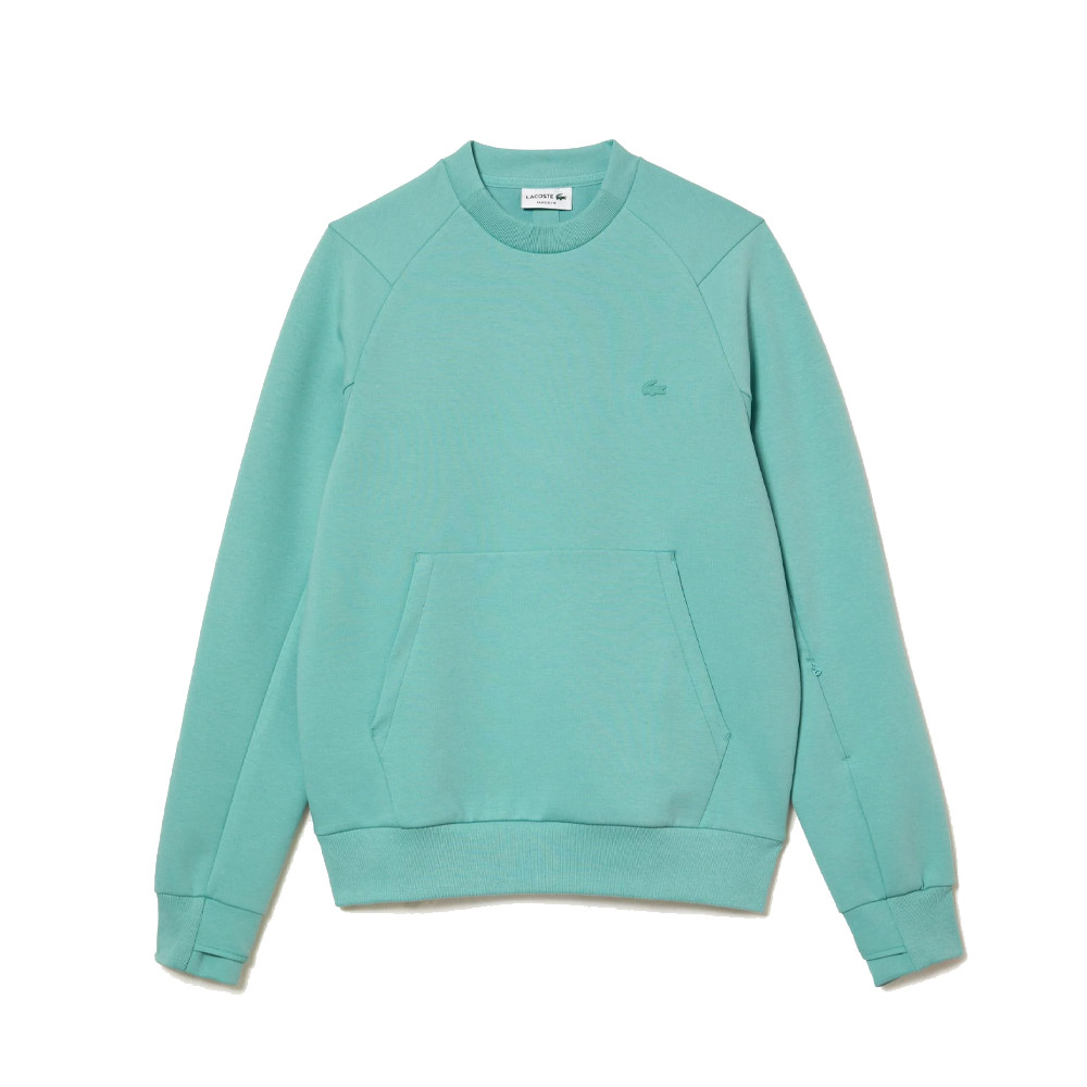 SWEAT LACOSTE A COL ROND EN COTON MÉLANGÉ AVEC POCHE VERT CLAIR