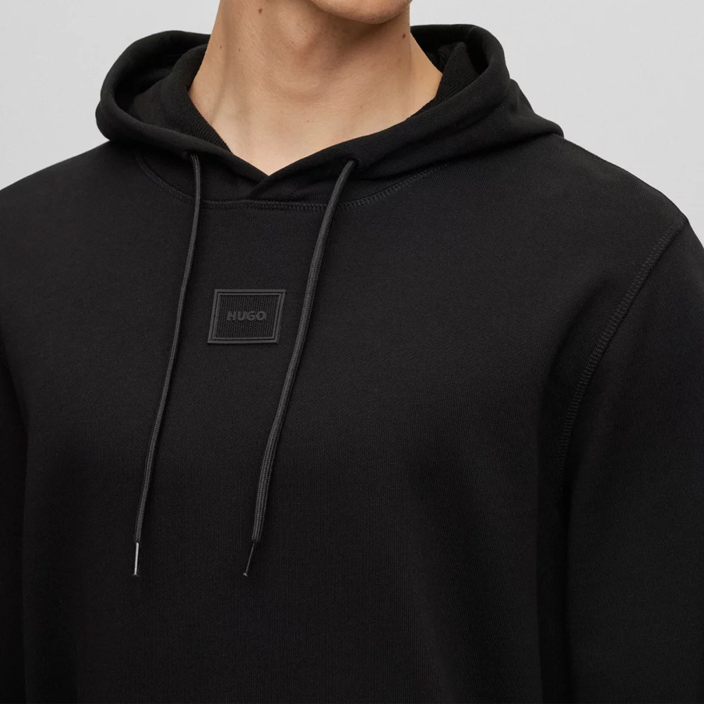 SWEAT À CAPUCHE EN MOLLETON DE COTON AVEC BADGE LOGO TON SUR TON DARATSCHI_C HUGO NOIR