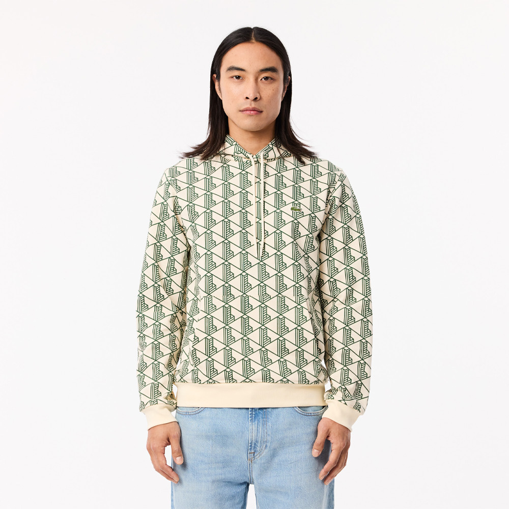 Avec ce sweatshirt à capuche, Lacoste insuffle son élégance et ses codes à l’essentiel du vestiaire sportswear. Réalisé dans un molleton épais et confortable, il se distingue par son motif monogramme iconique imprimé sur l’ensemble, pour offrir un style affirmé 100% crocodile.