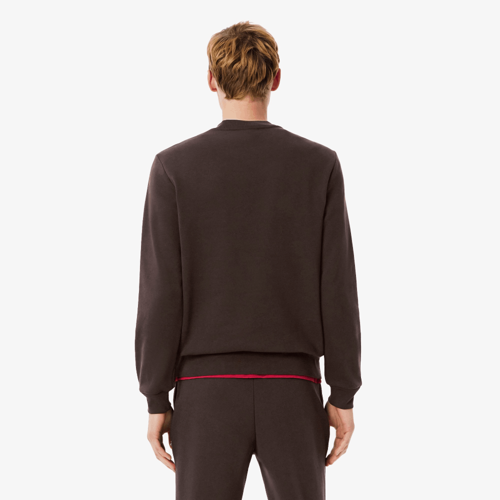 Sweatshirt en molleton gratté de coton biologique de col rond LACOSTE marron - SH9608 SKB - Pour hommes.