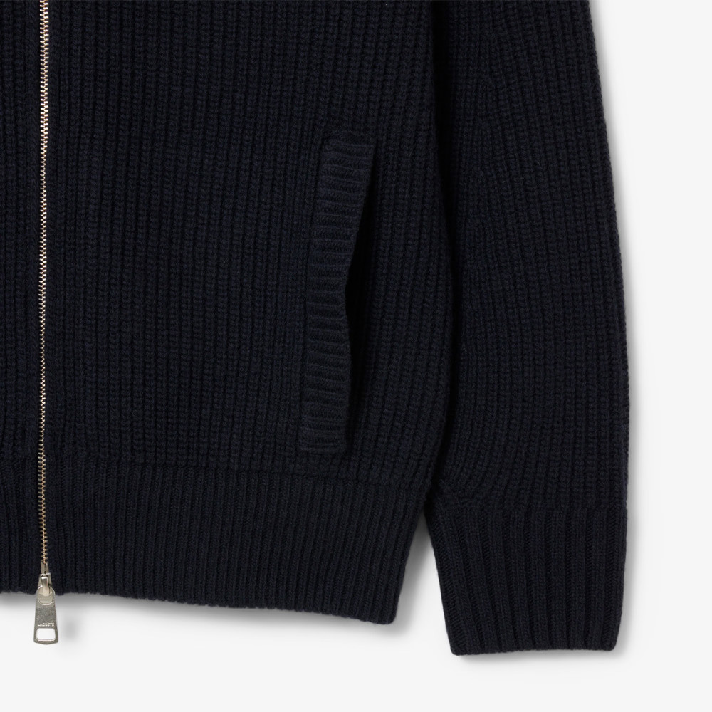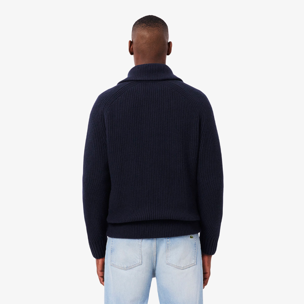 Pull zippé col montant laine cardée LACOSTE bleu nuit