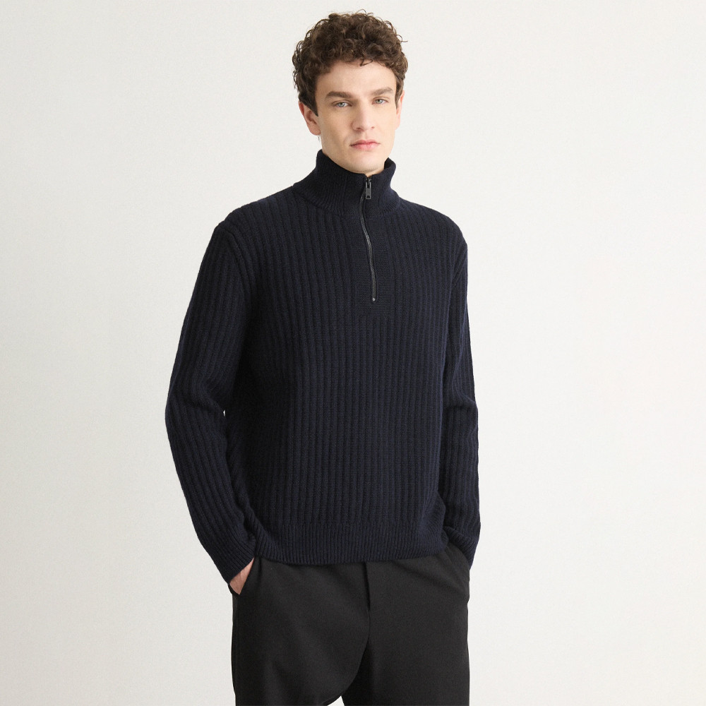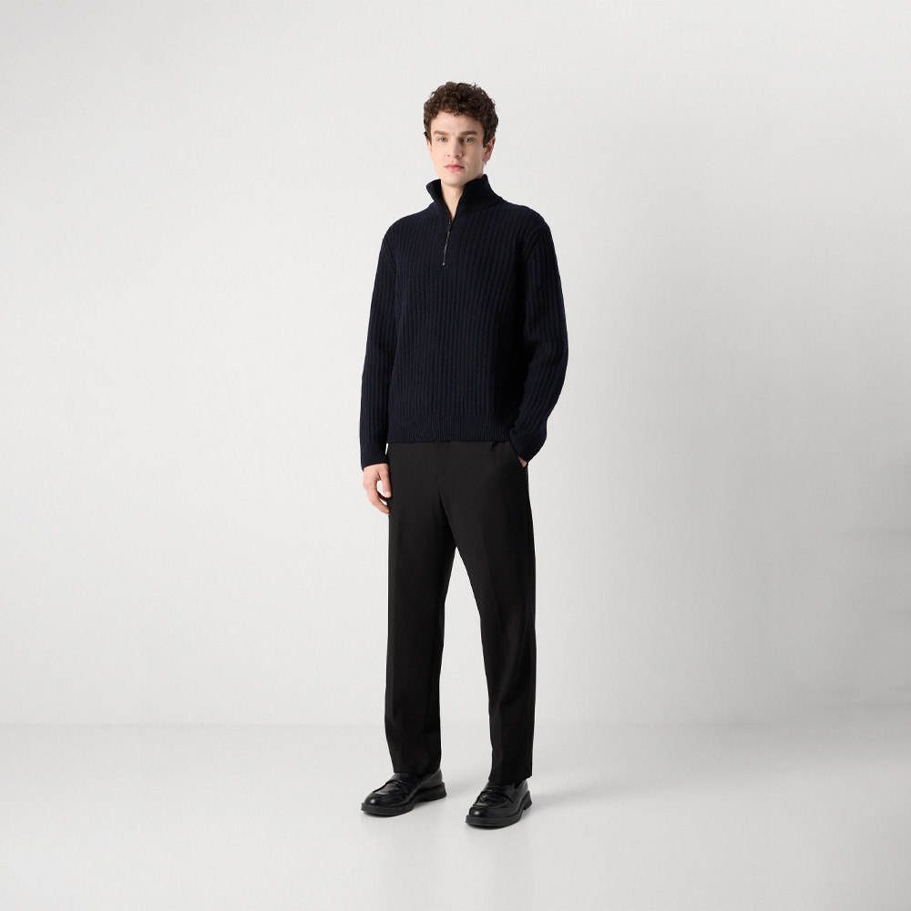 Pull en maille cotelée avec demi zip Kwinter BOSS bleu nuit