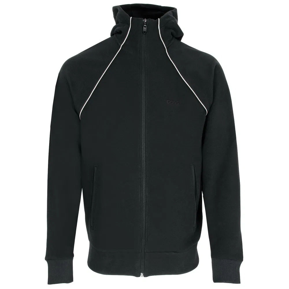 Sweat à capuche zippé en coton mélangé à détails passepoilés SW_Join_Saggy BOSS noir