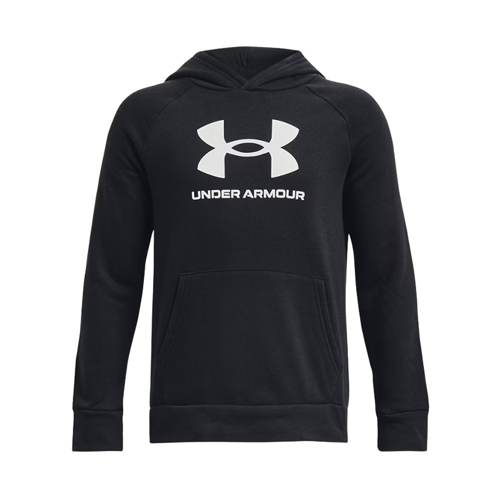 e sweat à capuche UA Rival Fleece pour garçon est conçu pour offrir chaleur et confort aux jeunes athlètes. Son design noir classique, rehaussé d'un grand logo Under Armour, apporte une touche de style moderne, idéal pour les activités sportives ou les moments de détente.