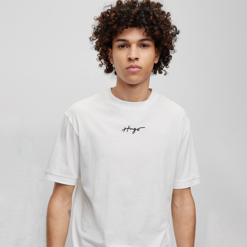T-SHIRT RELAXED FIT BLANC EN COTON AVEC LOGO MANUSCRIT DONTEVIDEO HUGO - 50486471 100 - Pour Homme