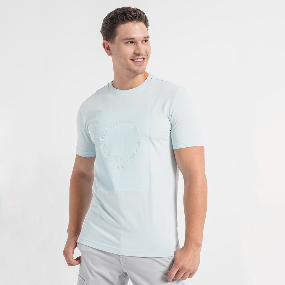 T-SHIRT EN COTON STRETCH À MOTIF ARTISTIQUE IMPRIMÉ ET BRODÉ TEE 4 BOSS BLEU - 50494337 471 - Pour Homme