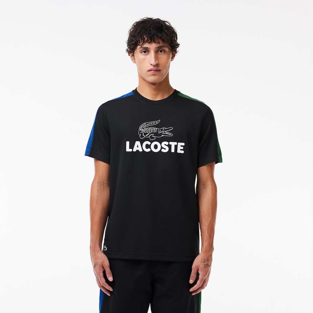 T-SHIRT LACOSTE TENNIS ULTRA-DRY COLOR-BLOCK IMPRIMÉ NOIR BLEU ET VERT - TH8336 ISM - Pour Homme