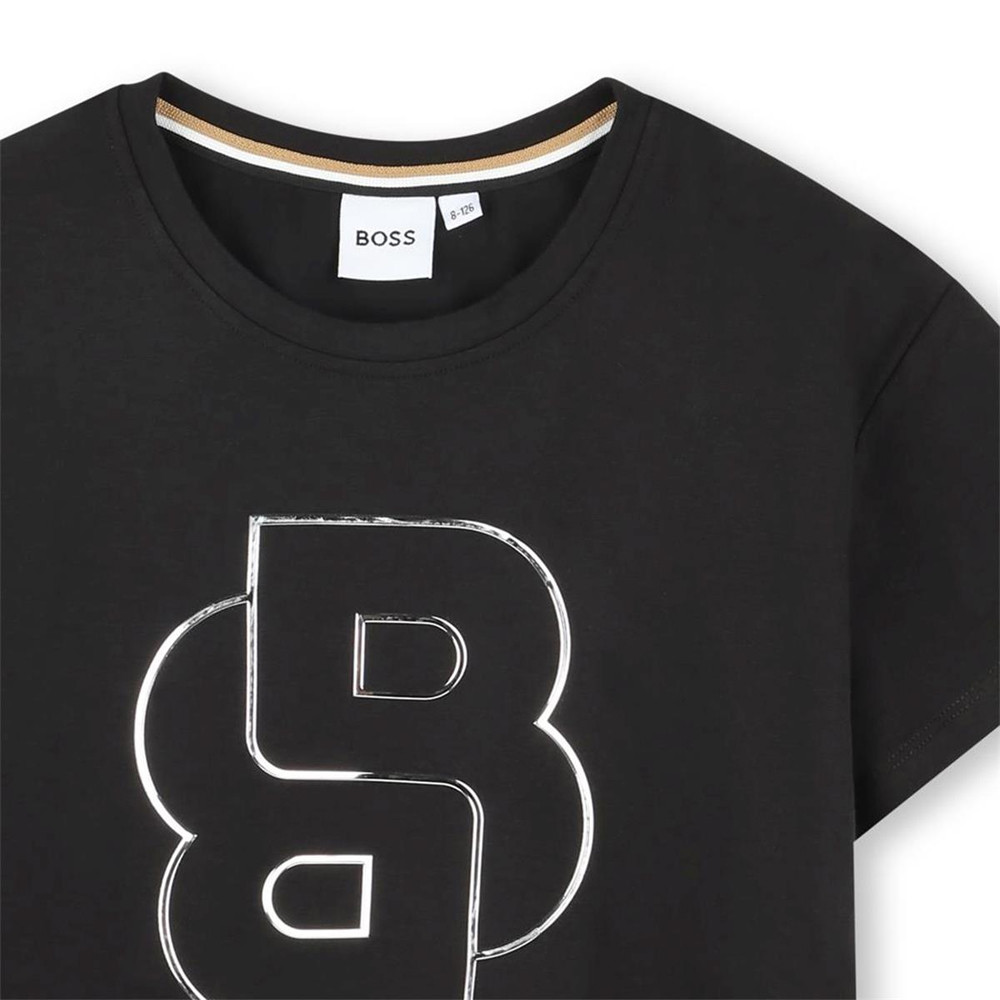 T-SHIRT NOIR À MANCHES COURTES BOSS ENFANT LOGO MÉTALISÉ EN RELIEF
