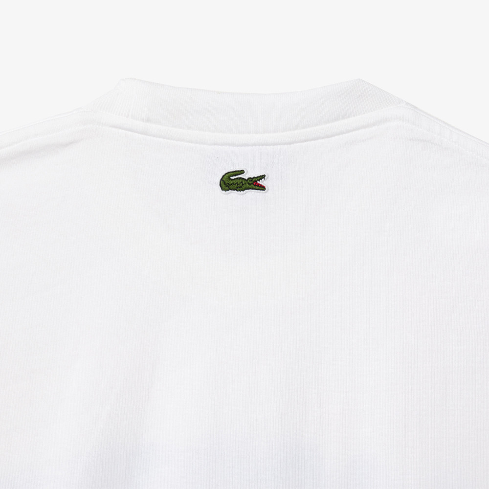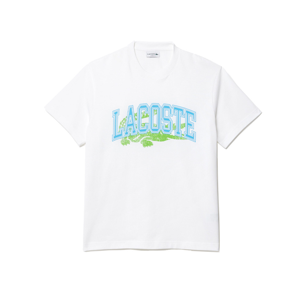 Créateur de sportswear depuis 1933, Lacoste présente ce t-shirt tricoté en jersey épais. Un imprimé exclusif, réalisé à partir de plusieurs techniques d’impression, habille l’avant de ce modèle créatif, symbole de l’élégance sportive Lacoste.